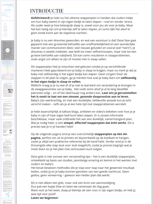 Wacht niet langer. De Droomgids is jouw sleutel tot een baby die slaapt in zijn eigen bedje – en een ouder die eindelijk weer kan rusten!